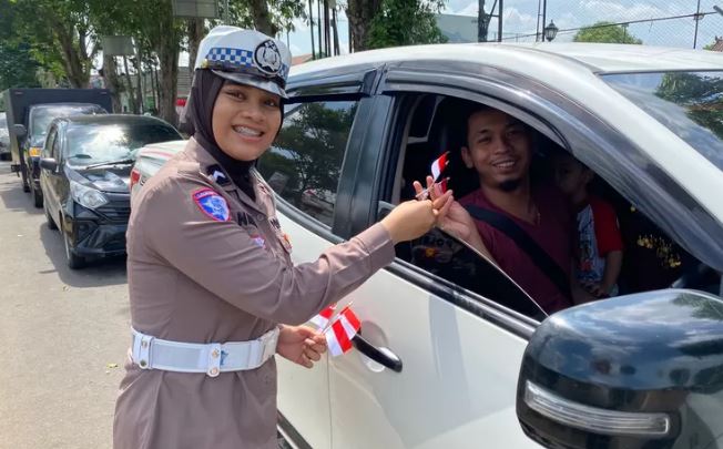 “Awalnya kaget diberhentikan, kirain ada razia. Ternyata malah dikasih bendera gratis. Senang rasanya bisa ikut memeriahkan HUT RI sambil diingatkan soal keselamatan,” ujarnya.