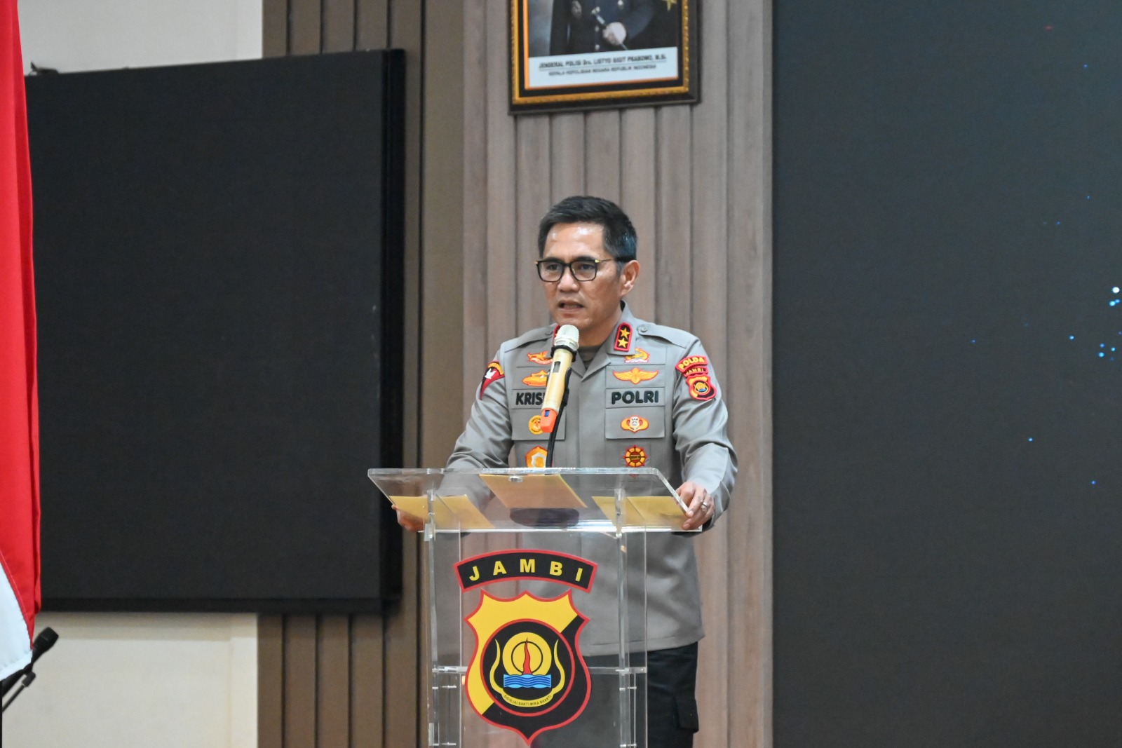 Dalam sambutannya, Kapolda Jambi menyampaikan apresiasi atas pengabdian para personel yang memasuki masa purna bakti.