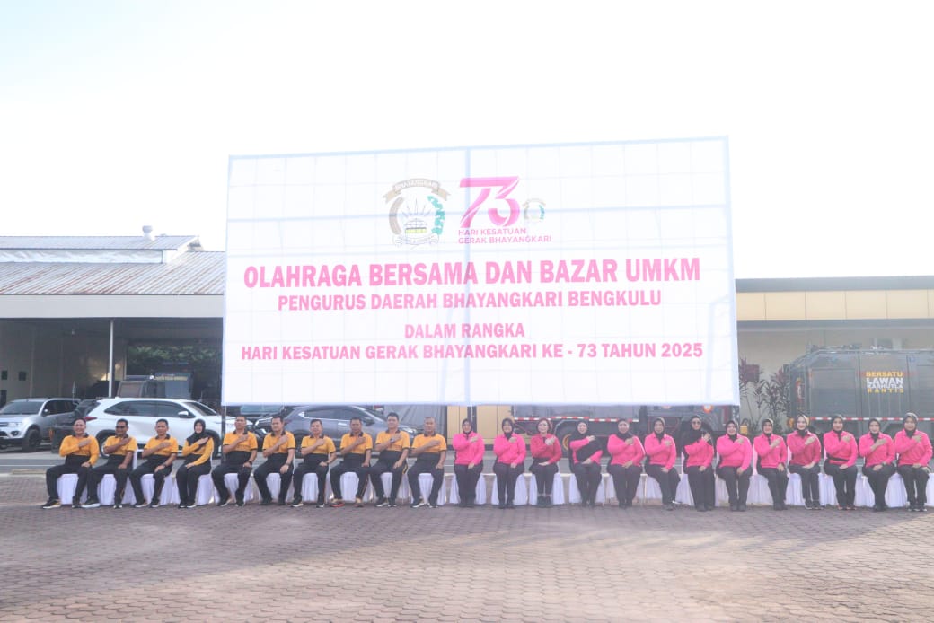 Bengkulu, Jabungtoday.com – Dalam rangka memperingati Hari Kesatuan Gerak Bhayangkari (HKGB) ke-73 Tahun 2025, Polda Bengkulu bersama Pengurus Daerah Bhayangkari Bengkulu menggelar kegiatan olahraga bersama dan bazar UMKM di Lapangan Anton Soedjarwo, Selasa (14/10/2025).
