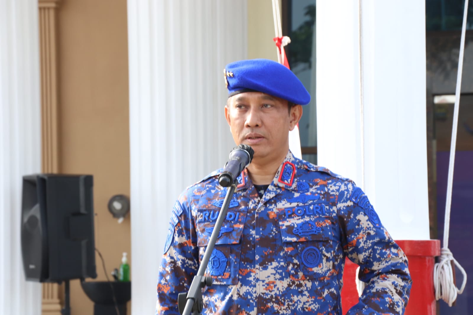 Dalam arahannya, Irjen Pol. Rusdi Hartono menyampaikan, seluruh personel wajib bangga dengan Polairud, dalam menjaga kawasan perairan.