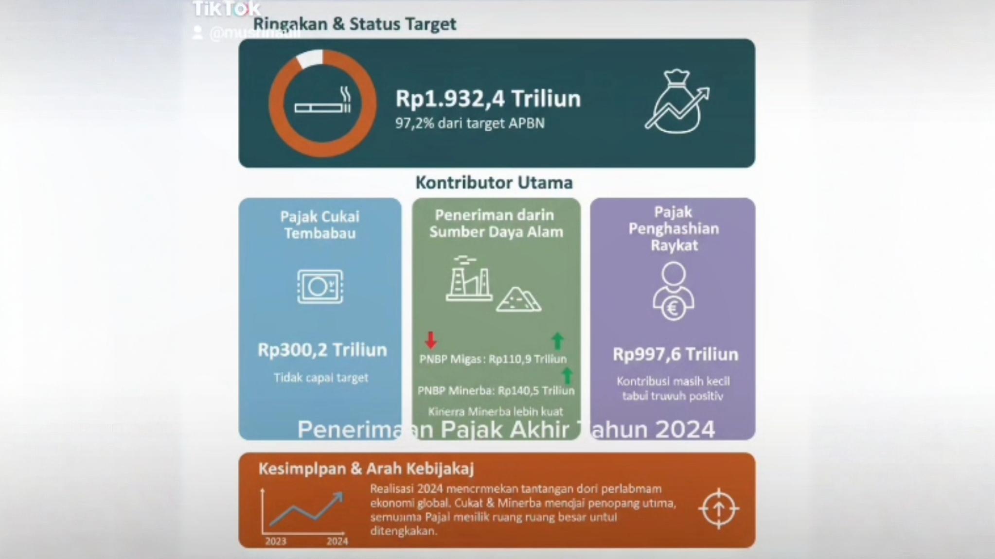 Bahkan malah dibawah cukai rokok, jadi narasi semu. Kekayaan sumber daya alam Indonesia untuk menopang APBN terbantahkan dengan raihan pajak yang telah disumbangkan. Pajak rakyat Indonesia.