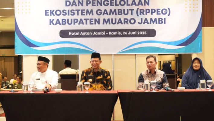 JT.COM – Pemerintah Kabupaten Muaro Jambi melalui Dinas Lingkungan Hidup (DLH) menggelar kegiatan Sosialisasi Penyusunan Dokumen Rencana Perlindungan dan Pengelolaan Ekosistem Gambut (RPPEG) di Hotel Aston Jambi, Kamis (26/6/2025).