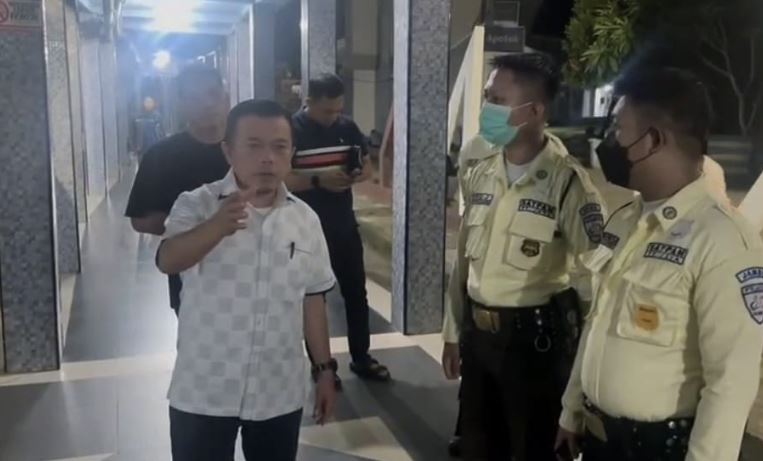 Gubernur Jambi Al Haris berdialog dengan petugas keamanan RSUD Raden Mattaher Jambi saat melakukan sidak pelayanan dan keamanan rumah sakit, Sabtu (4/10/2025) malam. (Foto: Riky)