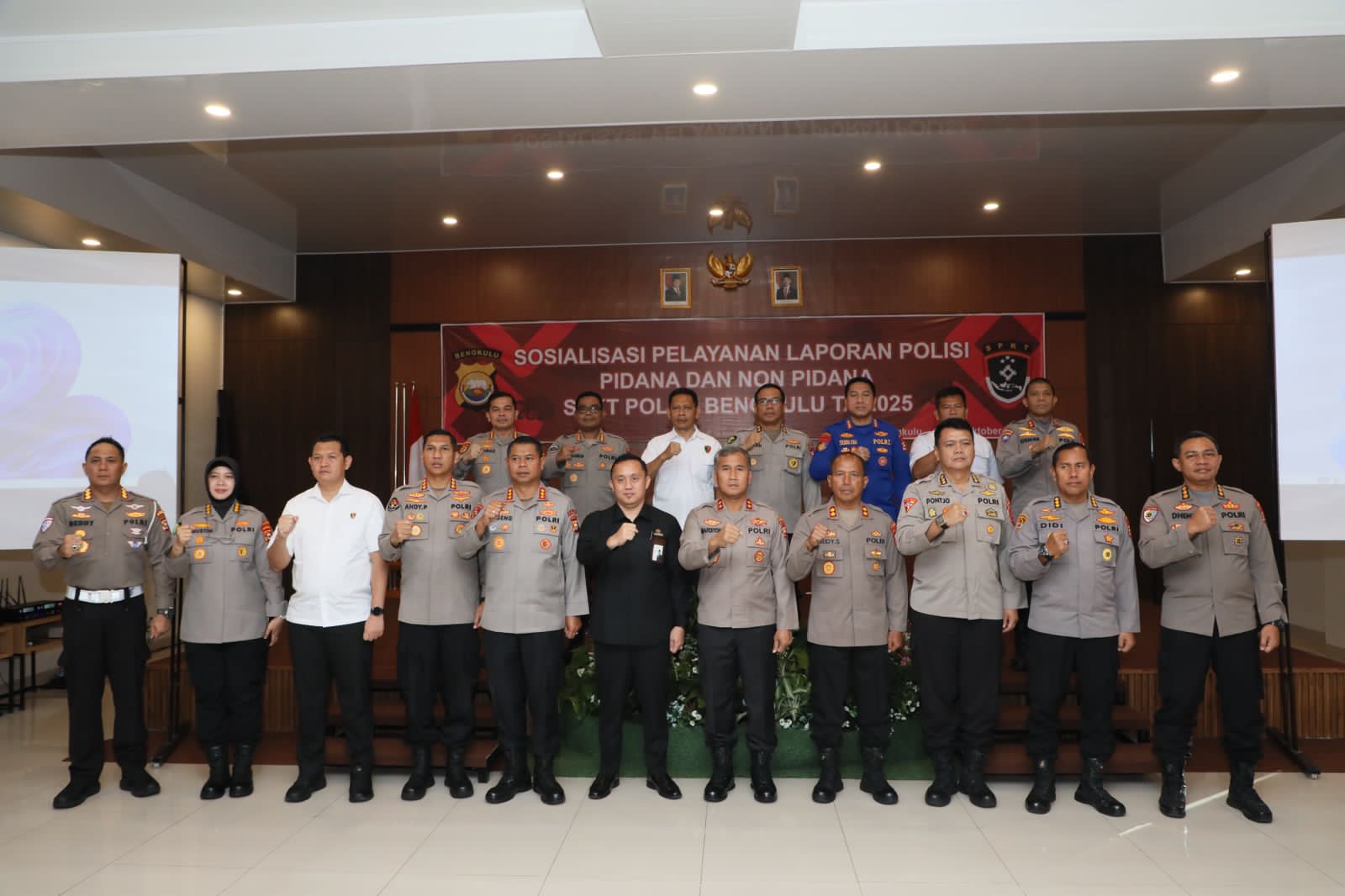 JT.COM – Kepolisian Daerah (Polda) Bengkulu menggelar Sosialisasi Pelayanan Laporan Polisi Pidana dan Non Pidana Tahun Anggaran 2025 di Hotel Wilo, Kecamatan Ratu Samban, Kota Bengkulu, Rabu (15/10/2025).
